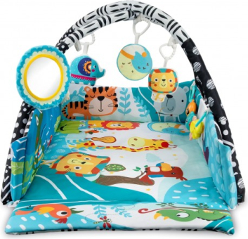 | Dažādu formu un krāsu rotaļlietas, čaukstošie elementi, elastīgie zobu riņķi, drošs spogulītis, grāmata ar daudziem krāsainiem zīmējumiem, spoguli un pīkstuli - tas viss lieliski attīsta bērna smalko motoriku. Grāmatiņu var noņemt un paņemt līdzi ceļojumā vai gultā.