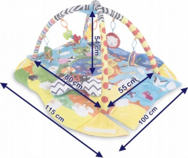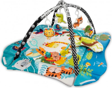 Paklājiņš attēlo draudzīgu dabas pasauli, un ir veidots tā, lai bērns spēlēs laikā mācītos atšķirt dzīvniekus.