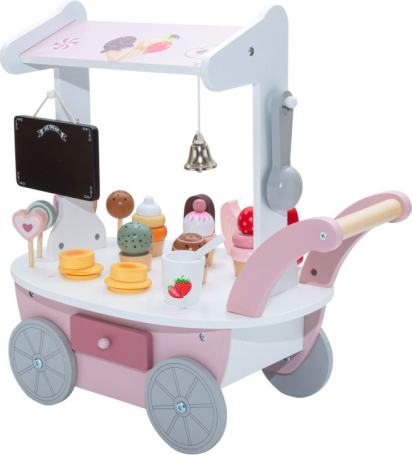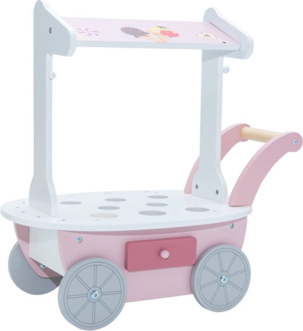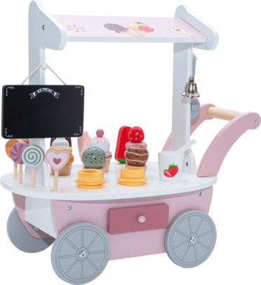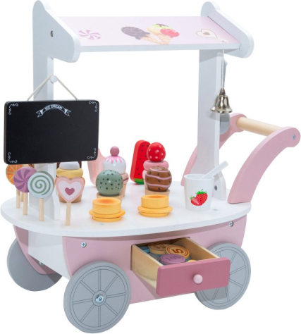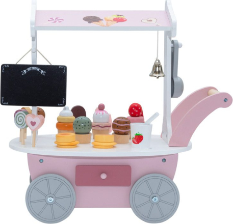 | Visiem garšo saldējums! Un, ja jūsu bērniem būs pašiem savi saldējuma ratiņi, viņi varēs atvērt saldējuma veikalu un piegādāt saldējumu vecākiem, vecvecākiem un visiem draugiem pagalmā. Tā ir ne tikai lieliska laika pavadīšana, bet arī lieliska izglītojoša rotaļlieta, kas palīdz labāk saprast apkārtējo pasauli un veicina ātrāku valodas un sociālo prasmju attīstību. Spēlējot var iepazīt krāsas un garšas, kā arī apgūt komunikācijas prasmes. Attīstīt bērnu finanšu zināšanas, runājot par naudas vērtību un izmaksām, pērkot saldējumu. To var izmantot arī bērnu krāsu apguvei un iztēles, radošuma, pašizpausmes un loģiskās uztveres attīstīšanai.