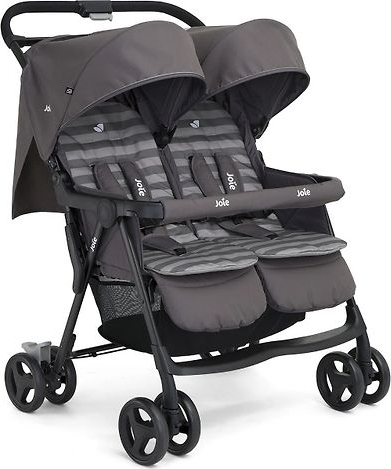 Коляски для близнецов Коляска для двойни Joie Aire Twin подходит для двоих детей от рождения до 15 кг. Легким и маневренным алюминиевым Aire Twin приятно управлять даже на узких улочках. В коляске также учтен комфорт пассажиров, так как все четыре колеса коляски амортизированы. Обе части сиденья можно регулировать независимо благодаря наклонной спинке, подъемной подставке для ног и регулируемым по высоте 5-точечным ремням безопасности. Выдвижной капюшон коляски с защитой UPF 50+ также имеет глазок. Легкую и прочную раму можно сложить для хранения одной рукой. Рамка