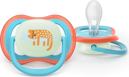 Ļauj jūsu mazuļa ādai elpot Mierinošs un elpojošs ar lielām gaisa atverēm. 9 no 10 vecākiem apstiprina: Philips Avent ultra air knupji manam mazulim ir ļoti ērti.** Mierinājums vienmēr ir pieejams neatkarīgi no tā, kurš rūpējas par zīdaini. Tagad 80% augu izcelsmes. Mazuļa āda var elpot, pateicoties īpaši lielajām gaisa atverēm Vairogā ir atveres, pa kurām pie mazuļa ādas piekļūst gaiss, tāpēc tā saglabājas sausāka un mazulim ir ērtāk. Dabiska mutes dobuma veidošanās ar ortodontisku knupīti Mūsu ortodontiskie knupīši ir ražoti no mīksta silikona, kas pielāgojas mutes muskuļu dabiskajām kustībām un tādējādi mazina risku, ka varētu izveidoties nepareizs sakodiens. Knupīša šaurā konstrukcija rada mazāku spiedienu starp mēli un aukslējām. Philips Avent ultra knupjiem ir neatkarīgās organizācijas Oral Health Foundation sertifikāts. Tie ir ražoti no 100% pārtikas klases silikona, ir izturīgāki un kalpo ilgāk nekā gumijas (lateksa) knupīši, turklāt tajos nav BPA, BPS, ftalātu, PVH vai policiklisko aromātisko ogļūdeņražu. Mazuļiem patīk — 98% zīžamās daļas (knupīša) pieņēmība Mūsu silikona knupīšu tekstūra ir veidota tā, ka līdzinās mātes krūtij. Aptaujājām vecākus, no kuriem 98% atzina, ka viņu mazulis pieņem Philips Avent ultra knupi. Saudzējot planētu ar 80% augu izcelsmes materiālu Ilgtspējīgāka izvēle ļauj ne tikai teicami rūpēties par mazuli, bet arī saudzēt planētu. Visi Philips Avent ultra klāsta knupji un sterilizēšanas futrāļi ir ražoti no 80% augu izcelsmes materiālu. Praktisks sterilizēšanas un pārnēsāšanas futrālis Pārnēsāšanas futrālis vienlaikus ir arī sterilizēšanas futrālis, tāpēc knupjus var vienmēr ātri sagatavot lietošanai. Atliek tikai ieliet ūdeni un 3 minūtes sterilizēt mikroviļņu krāsnī, kas ir ērti, turklāt rada līdz 50% mazāk CO2 emisiju. Spīd tumsā vēl ilgi pēc tam, kad ir izslēgta gaisma Knupja pamatne tumsā mazliet spīd. Tāpēc to ir vieglāk atrast, kad mazulis jau ir nolikts gulēt.