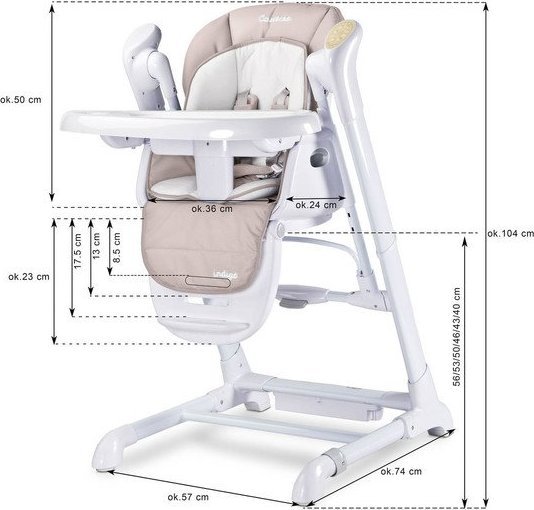 - вместительная спинка складывается в лежачем положении (независимо от сиденья - 4 уровня регулировки) - ребенку обеспечен комфорт во время еды и отдыха