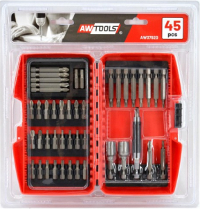 Skrūvgriežu uzgaļu komplekts AWTools AW37920; S2; 45 gab. + Magnētisks turētājs