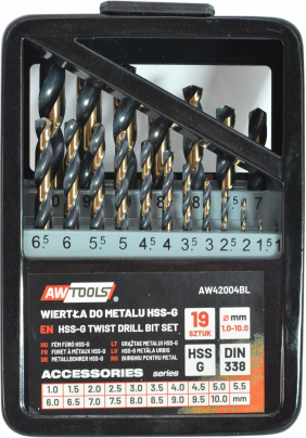 Urbju komplekts metālam AWTools AW42004BL; HSS; M2; 1-10 mm; 19 gab.