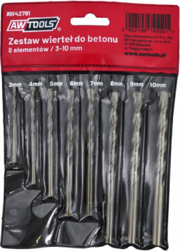 Urbju komplekts metālam AWTools AW42791; TCT; 3-10 mm; 8 gab.