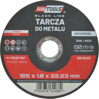 Abrazīvais griešanas disks AWTools AW49060BL; 125x1,6 mm metālam