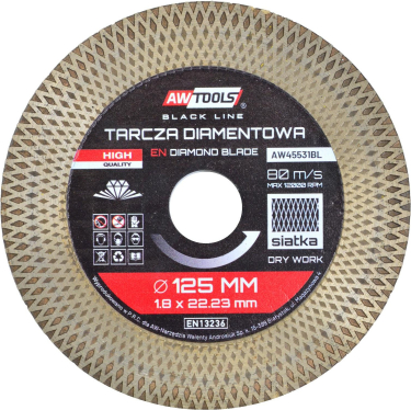 Dimanta disks sausajai un slapjajai griešanai AWTools AW45531BL; 125x1,9x22,2 mm