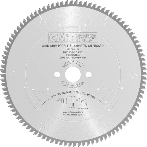 Griešanas disks alumīnijam CMT 297; 300x3,2x32; Z96; -6°