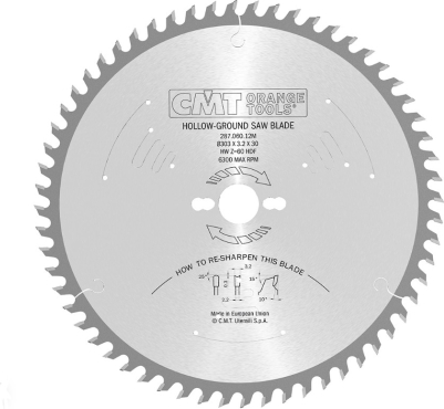 Griešanas disks kokam CMT 287.060.10M; 250x30 mm; Z60; 5°