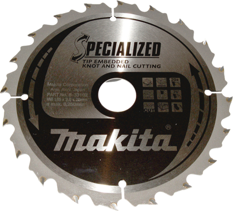 Griešanas disks kokam Makita Specialized; 185x2x30 mm; Z20; 25°