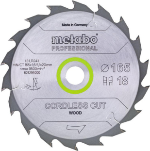 Griešanas disks kokam Metabo 628294000; 165x20 mm; Z18; 20°
