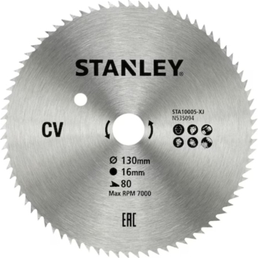 Griešanas disks kokam Stanley STA10005-XJ; 130x16 mm; 80T