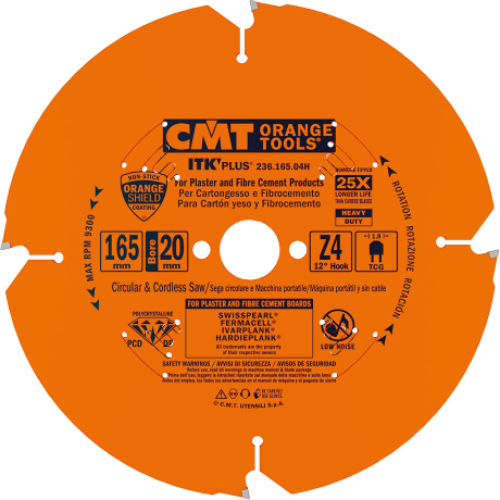 Griešanas disks šķiedru cementam CMT 236; 165x1.8x20; Z4 ; 12°