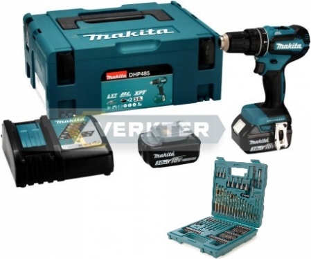 Akumulatora triecienurbjmašīna-skrūvgriezis Makita DHP485FJX1; 18 V; 2x3,0 Ah akum. + piederumi