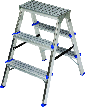 Divpusējās kāpnes ar pretslīdes protektoriem var izmantot daudziem darbiem gan iekštelpās, gan ārā. Vieglas un stabilas ar ierobežotājsiksnām. 80 mm plati protektori nodrošina ērtu uzkāpšanu pa kāpnēm un stāvēšanu. Tehniskie dati:
