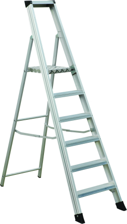 Vienpusējas alumīnija celtniecības kāpnes ar platformu. Šīs pakāpienveida kāpnes var bez problēmām novietot gandrīz jebkur un tās ir ārkārtīgi ērtas lietošanā. Plati, rievoti pakāpieni, liela platforma, margas papildu drošībai. Kāpnes ir aprīkotas ar šķērsstieņiem, kas novērš kāpņu tālāku atvēršanu, un pretslīdēšanas kājām, kas nodrošina kāpņu stabilitāti. Tehniskie dati:
