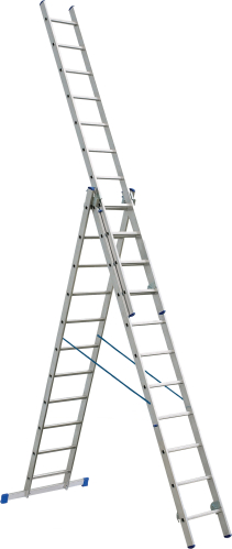Trīsposmu alumīnija daudzfunkcionālas kāpnes, kas izmantojamas kā slīpas, pagarināmas un pakāpienu kāpnes ar izvelkamu kāpņu daļu. Tērauda eņģes, kas nodrošina vienkāršu un drošu kāpņu pagarināšanu. Drošības bloķēšanas siksnas novērš nejaušu kāpņu atvēršanos. Pašbloķēšanas sistēma novērš kāpņu atvēršanos transportēšanas laikā. Pretslīdēšanas kājas nodrošina kāpņu stabilitāti. Piemērotas lietošanai gan telpās, gan ārā. Tehniskie dati: