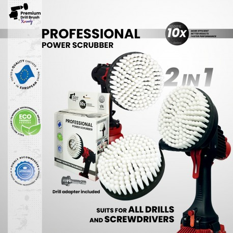 | „Premium Drill Brush by Kornely“ специально разработан для очистки поверхностей. Сверлильные щетки высшего качества идеально подходят для использования в офисе и за его пределами. Щетки не царапают поверхность и неповреждает краски. Эта белая щетка предназначена для мягкой чистки, а щетинки мягкие, как зубная щетка. Щетина: очень мягкая, белая Длина щетины: 2 см Рабочая ширина: 15 см Шероховатость: 1/5 Подходит для: всех электрических и аккумуляторных дрелей Подходит для чистки: ковролин, кожа, обивка, мебель, салон автомобиля, стекло Показания: не царапают поверхность и не повреждает краски Рекомендации: Может использоваться со всеми типами аккумуляторных и электрических дрелей, кроме молотковых дрелей. Всегда проверте щетку на не большую поверхность. Во время чистки не толкайте щетку слишком сильно, вал может сломаться. |