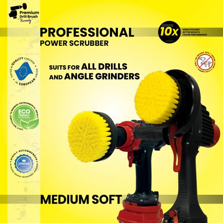 Профессиональная щетка Premium Drill Brush 2 in 1 - средний мягкий, желтый, 10цм.