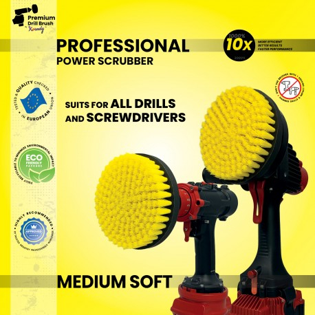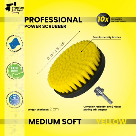 Профессиональная щетка Premium Drill Brush 2 in 1 - средний мягкий, желтый, 15цм.