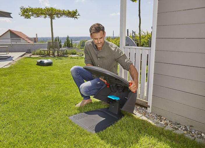 - Aizsardzība no saules un lietus: Gardena robotizētie zāles pļāvēji ir ļoti izturīgi un paredzēti darbam āra apstākļos. Patversme piedāvā papildu aizsardzību no saules un lietus.