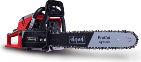 | Dimensions L x W x H 430 x 255 x 250 mm Engine type 2 stroke Engine displacement 56 cc / max. 2300 W Chain bar length 51 cm Cutting D max. 47 cm Chain tension adjustment Yes Chain brake Yes Oil tank capacity 0.26 L Fuel tank capacity 0.55 L • Powerful 56 cc 2-stroke engine for heavy duty use • 3.1 HP to tackle every task • 20" Procut bar and chain with low kickback • Anti-vibration control ensures convenient working • Automatic chain lubrication • Safety chain braking system stops the chain within milliseconds The Scheppach PCS56 chain saw with its 56 cc petrol engine is the professional choice for high power. Its 3.1 HP tackles every task and is built for heavy duty use. The chainsaw comes with a 20” bar for cutting larger trees and branches. Complete with Procut bar and chain as well as chain braking system, it combines optimum performance with safety. | ||||||||||||||||||||||||||||||||