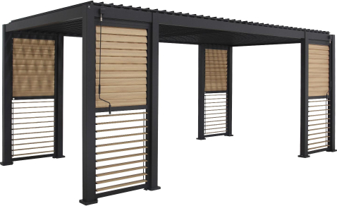 | Gazebo MIRADOR-111 with louvred walls 3 x 6 m, dark grey.