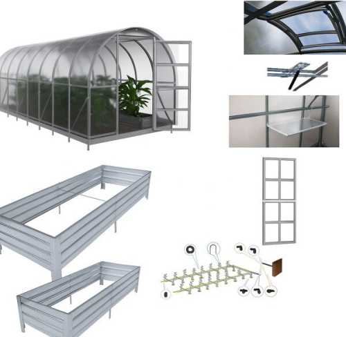 Комплект теплицы – КLASIKA 3×6 м с поликарбонатом 6 мм, форточкой с автоматическим открывателем, полкой, дополнительной дверью, комплектом для подвязки растений, приподнятыми грядками и системой полива
