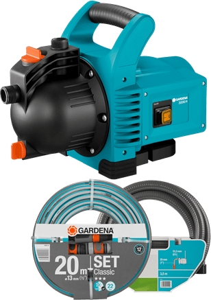 Gardena Dārza sūknis 3000/4 komplekts (20m, 1/2" šļūtene + 3.5 m iesūcējšļūtene)