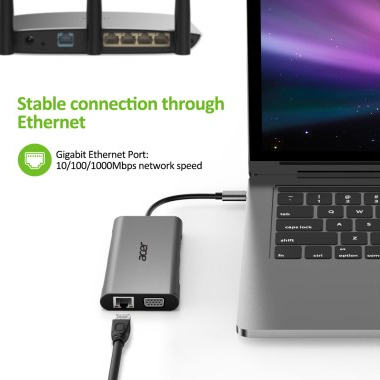 Acer HP.DSCAB.002 laptop dock/port replicator USB 3.2 Gen 1 (3.1 Gen 1) Type-C Silver