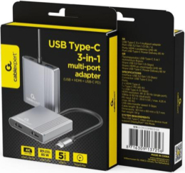 Dokstacija Gembird USB-C 3-in-1multi port (USB port + HDMI + PD) 85W USB Type-C