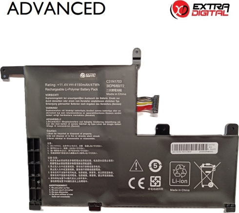 Extradigital Аккумулятор для ноутбука ASUS C31N1703, 4150mAh, Extra Digital Advanced