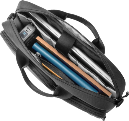 Well-organized storage spaceThe bag features two spacious compartments with additional pockets and dividers. This makes it easy to carry a laptop, tablet, charger, mouse, documents, and even several smaller accessories. An extra rear pocket allows quick access to a notebook or folder without opening the main compartment.