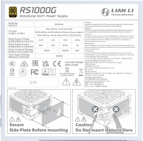 Power Supply LIAN LI ATX PC 100 - 240 V 1000 W G9P.RS1000G.W000.EU