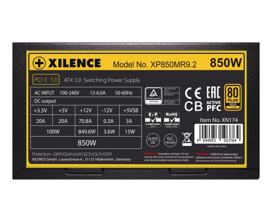 Xilence Performance X ATX 3.0 80+ GOLD 850W, PC power supply (black, 1x 12VHPWR, 3x PCIe, cable management, 850 Watt)