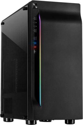 Chassis INTER-TECH A-3411 Creek Gaming Tower, ATX, 1xUSB3.0, 2xUSB2.0, PSU optional, Window side panel, LED light on the front, integrated RGB LED, Black