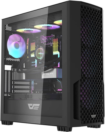 Darkflash DF2100 computer case + 4 ARGB fans (black)Here is the DF2100 - a case that will revolutionize your desktop PC. Created from 0.6 mm thick SPCC material, it provides sturdiness and durability, and its dimensions of 450 x 210 x 482 mm are perfectly suited to the needs of modern computer systems. Compatibility with E-ATX, ATX, M-ATX and ITX motherboards gives users unlimited configuration options, while seven expansion slots and space for two HDDs and three SSDs guarantee incredible flexibility in building powerful machines. Built-in USB portsThe DF2100 features USB 3.0 and USB 2.0 ports, located at the top of the chassis for easy accessibility. This makes quickly connecting peripherals even easier and more convenient. Masterful coolingThe Supreme Cooling Layout supports up to 8 fans of up to 120mm in size, as well as heat sinks of up to 360mm in length, enabling efficient heat dissipation and maintaining optimal temperatures for even the most demanding components. Horizontal graphics card mountingThe optional horizontal mounting of the VGA card not only protects it from bending, but also allows for a striking presentation of your graphics card, while becoming a functional design element of your gaming setup. Wide compatibilityCompatible with a wide range of motherboards, as well as a maximum graphics card length of up to 400 mm and a CPU cooler height of up to 165 mm, the DF2100 is ready to take on board both standard and advanced components. Expansion possibilities are almost limitless. Front and side panelsThe ABS front panel and tempered glass side panel finish not only add elegance, but also provide durability and resistance to damage. It's a combination that draws the eye and protects your computer. The kit includes