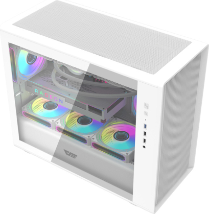 Darkflash DB460M is a reliable computer case designed for all gamers looking to combine functionality with aesthetics. It offers a spacious interior for convenient installation of graphics cards up to 420 mm in length, a tempered glass side panel, a full mesh front panel and excellent cooling options (up to 12 fans and a 360 mm radiator can be installed). The chassis looks sleek, and is compatible with M-ATX and ITX motherboards and equipped with USB 3.0 ports for fast data transfer.