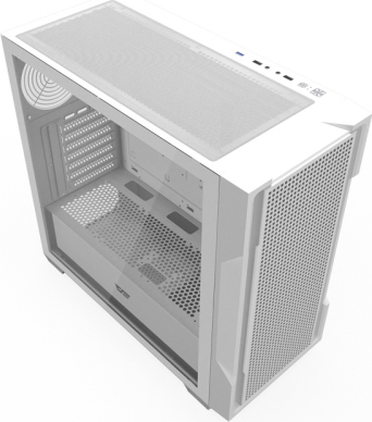 One of the main features of the DS900 Mesh chassis is the mesh front panel, which provides very good airflow to the interior. Combined with the side air ducts, it improves circulation and supports the maintenance of low temperatures even when the system is fully loaded. Although the chassis does not include fans from the factory, the design allows the installation of up to 12 120mm fans, giving you full control over cooling. The chassis also supports water cooling - it will accommodate a radiator of up to 240 mm at the front and up to 360 mm at the top.