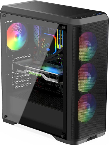 Obudowa Ventum VT4V Evo TG ARGB wyróżnia się bardzo wysokim przepływem powietrza zapewnionym przez otwarty przedni panel, |