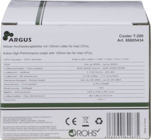 Fan(s): 1x 80x80x15mm, 30.6m3/?h, 600-1800rpm, 26dB(A)