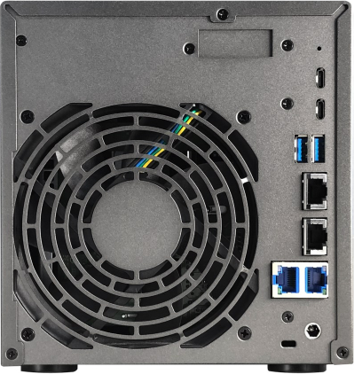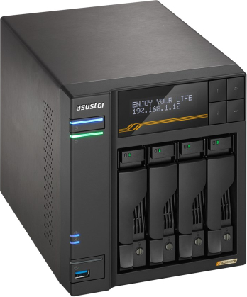 NAS Asustor AS6804T; Tower; 4x (3.5" SATA HDD/ 2.5" SSD); AMD Ryzen Embedded V3C14; 16G ECC DDR5 SODIMM (max. 64GB), 2x 10GbE, 2x 5GbE, 4x M.2 2280 NVMe PCIe 4.0, 2x USB4, 2x USB 3.2 Gen, 1x optional 10 GbE card