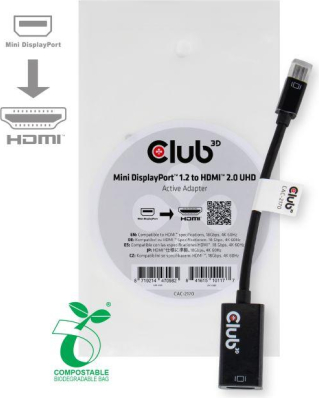 Mini DisplayPort 1.2 to HDMI 2.0 UHD Active Adapter. Manufacturer Website: https://www.club-3d.com/en/detail/2439/mini_displayport_1.2_to_hdmi_2.0_uhd_active_adapter/ | ||||||||||||||||||||||||||