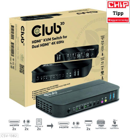 HDMI™ KVM SWITCH FOR DUAL HDMI 4K 60Hz. Manufacturer Website: https://www.club-3d.com/en/detail/2591/hdmit_kvm_switch_for_dual_hdmi_4k_60hz/ | ||||||||||||||||||||||||||||||