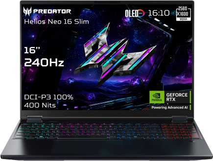 Acer Predator Helios Neo 16S AI PHN16S-71-7556 Abyssal Black 16 " OLED WQXGA 2560 x 1600 pixels Intel Core U7 255HX 16 GB DDR5 Solid-state drive capacity 1000 GB NVIDIA GeForce RTX 5060 GDDR7 8 GB Windows 11 Home 802.11ax Bluetooth version 5.3 Keyboard la