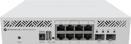| The world of networking is on the move. Even small offices are shifting from Gigabit connections to the lightning-fast realm of 2.5 Gigabit connectivity. With CRS310-8G+2S+IN, we aim to give you the tools to outpace your competition with a strong combination of eight 2.5 Gigabit Ethernet ports and two 10 Gigabit SFP+ ports in a compact, powerful package! Furthermore, these SFP+ cages support multiple data rates: 1G, 2.5G, and 10G. So you can use this switch as a 10x 2.5G switch, if needed. Classic MikroTik flexibility! The amazing Marvell 98DX226S switch-chip and integrated dual-core ARM CPU can handle the full potential of RouterOS v7. Run VLANs, Jumbo frames, link aggregation, ACL rules, and so much more! You can even do some hardware offloaded Layer-3 routing. There are multiple mounting options. You can easily install the CRS310-8G+2S+IN in a standard 19” rack using the provided rackmount ears. Another option is to get the RMK-2/10 accessory set, which allows you to mount two CRS310 units within the same 1U 19” rack space or mount it in a 10” rack. The choice is yours! Manufacturer Website: https://mikrotik.com/product/crs310_8g_2s_in#fndtn-specifications | ||||||||||||||||||||