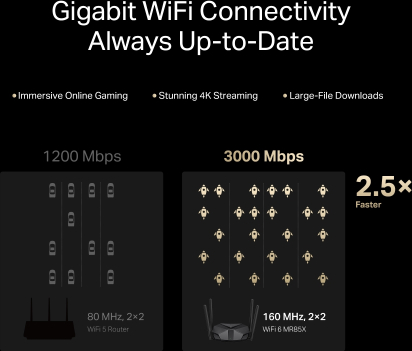 Mercusys AX3000 Dual-Band Wi-Fi 6 Router MR85X 802.11ax Ethernet LAN (RJ-45) ports 3 Mesh Support Yes MU-MiMO No No mobile broadband