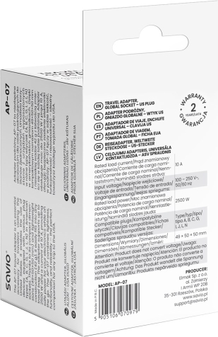 Savio AP-07 power adapter/inverter Universal 2500 W White