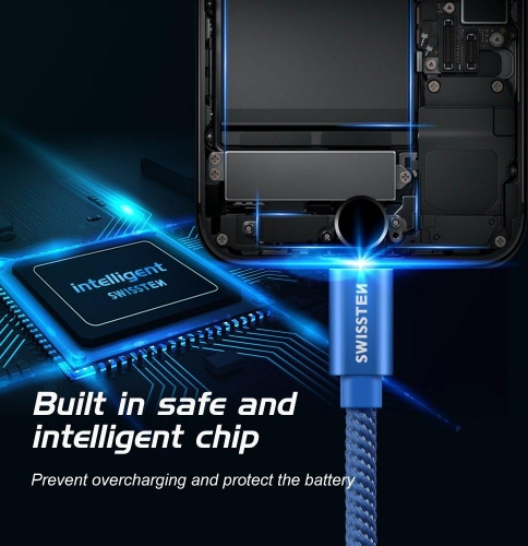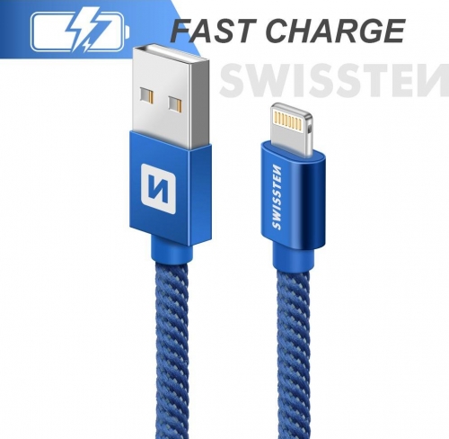 Swissten Textile Fast Charge 3A Lighthing (MD818ZM/A) Кабель Для Зарядки и Переноса Данных 1.2m Синий