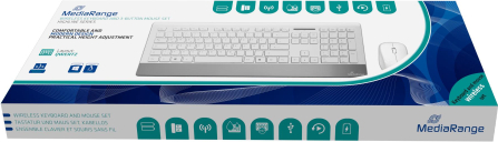 MediaRange input devices are perfect for all applications in the office or at home. Our set, consisting of a wireless keyboard and mouse, can be quickly and easily connected via the USB wireless receiver with any computer and is ready to use with all common operating systems. With more than 10 million keystrokes and splash protection, our keyboards are perfectly protected against everyday wear and tear. The practical height adjustment allows you a better writing comfort.
